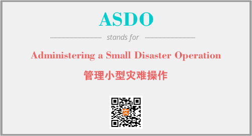 英文缩略词“ASDO”经常作为“Administering a Small Disaster Operation”的英文缩写来使用,中文表示:“管理小型灾难操作”。本文将详细介绍英文缩写词ASDO所代表英文单词,其对应的中文拼音、详细解释以及在英语中的流行度。此外,还有关于缩略词ASDO的分类、应用领域及相关应用示例等。