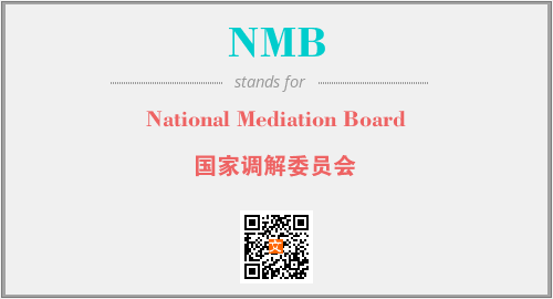 英文缩略词“NMB”经常作为“National Mediation Board”的英文缩写来使用,中文表示:“国家调解委员会”。本文将详细介绍英文缩写词NMB所代表英文单词,其对应的中文拼音、详细解释以及在英语中的流行度。此外,还有关于缩略词NMB的分类、应用领域及相关应用示例等。