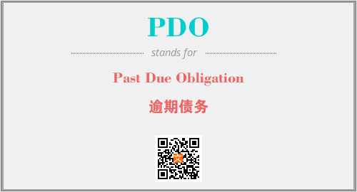 英文缩略词“PDO”经常作为“Past Due Obligation”的英文缩写来使用,中文表示:“逾期债务”。本文将详细介绍英文缩写词PDO所代表英文单词,其对应的中文拼音、详细解释以及在英语中的流行度。此外,还有关于缩略词PDO的分类、应用领域及相关应用示例等。