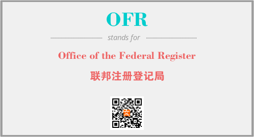 上述内容是“Office of the Federal Register”作为“OFR”的缩写,解释为“联邦注册登记局”时的信息,以及英文缩略词OFR所代表的英文单词,其对应的中文拼音、详细解释以及在英文中的流行度和相关分类、应用领域及应用示例等。