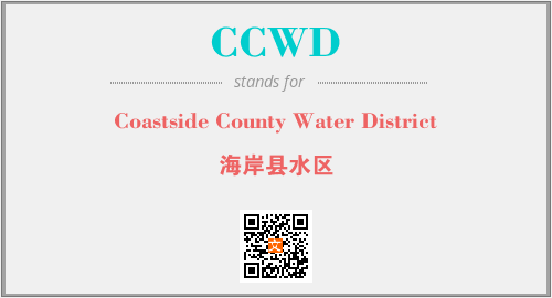 英文缩略词“CCWD”经常作为“Coastside County Water District”的英文缩写来使用,中文表示:“海岸县水区”。本文将详细介绍英文缩写词CCWD所代表英文单词,其对应的中文拼音、详细解释以及在英语中的流行度。此外,还有关于缩略词CCWD的分类、应用领域及相关应用示例等。