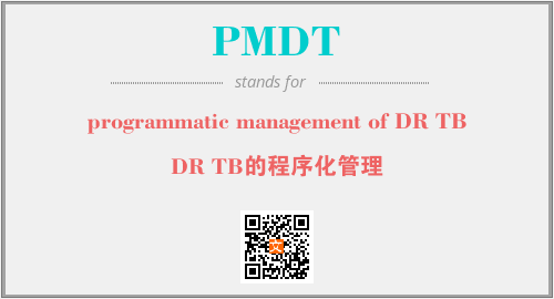 英文缩略词“PMDT”经常作为“programmatic management of DR TB”的英文缩写来使用,中文表示:“DR TB的程序化管理”。本文将详细介绍英文缩写词PMDT所代表英文单词,其对应的中文拼音、详细解释以及在英语中的流行度。此外,还有关于缩略词PMDT的分类、应用领域及相关应用示例等。