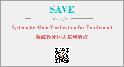 以上为Systematic Alien Verification for Entitlement英文缩略词SAVE的中文解释,以及该英文缩写在英语的流行度、分类和应用领域方面的信息。