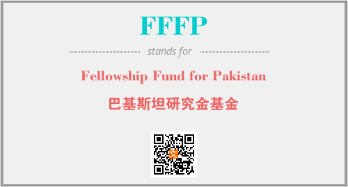 上述内容是“Fellowship Fund for Pakistan”作为“FFFP”的缩写,解释为“巴基斯坦研究金基金”时的信息,以及英文缩略词FFFP所代表的英文单词,其对应的中文拼音、详细解释以及在英文中的流行度和相关分类、应用领域及应用示例等。