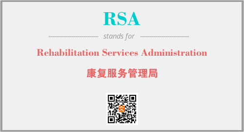 英文缩略词“RSA”经常作为“Rehabilitation Services Administration”的英文缩写来使用,中文表示:“康复服务管理局”。本文将详细介绍英文缩写词RSA所代表英文单词,其对应的中文拼音、详细解释以及在英语中的流行度。此外,还有关于缩略词RSA的分类、应用领域及相关应用示例等。