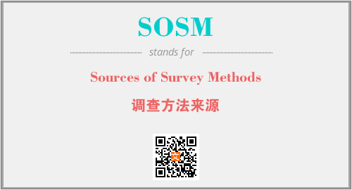英文缩略词“SOSM”经常作为“Sources of Survey Methods”的英文缩写来使用,中文表示:“调查方法来源”。本文将详细介绍英文缩写词SOSM所代表英文单词,其对应的中文拼音、详细解释以及在英语中的流行度。此外,还有关于缩略词SOSM的分类、应用领域及相关应用示例等。