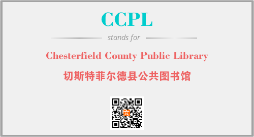 英文缩略词“CCPL”经常作为“Chesterfield County Public Library”的英文缩写来使用,中文表示:“切斯特菲尔德县公共图书馆”。本文将详细介绍英文缩写词CCPL所代表英文单词,其对应的中文拼音、详细解释以及在英语中的流行度。此外,还有关于缩略词CCPL的分类、应用领域及相关应用示例等。