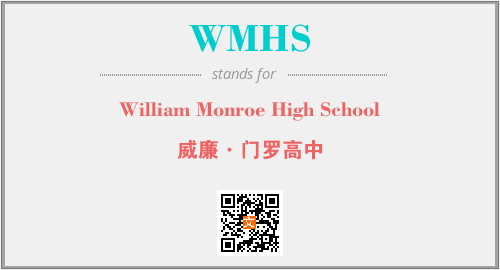 上述内容是“William Monroe High School”作为“WMHS”的缩写,解释为“威廉·门罗高中”时的信息,以及英文缩略词WMHS所代表的英文单词,其对应的中文拼音、详细解释以及在英文中的流行度和相关分类、应用领域及应用示例等。