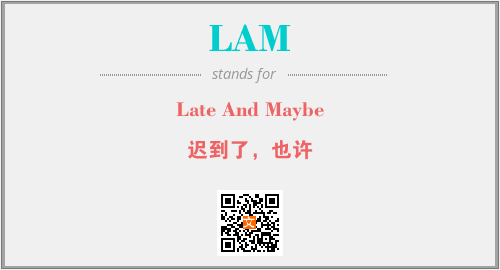 以上为Late And Maybe英文缩略词LAM的中文解释,以及该英文缩写在英语的流行度、分类和应用领域方面的信息。