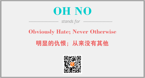 上述内容是“Obviously Hate; Never Otherwise”作为“OH NO”的缩写,解释为“明显的仇恨;从来没有其他”时的信息,以及英文缩略词OH NO所代表的英文单词,其对应的中文拼音、详细解释以及在英文中的流行度和相关分类、应用领域及应用示例等。