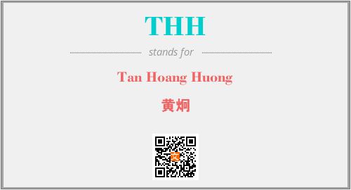 英文缩略词“THH”经常作为“Tan Hoang Huong”的英文缩写来使用,中文表示:“黄炯”。本文将详细介绍英文缩写词THH所代表英文单词,其对应的中文拼音、详细解释以及在英语中的流行度。此外,还有关于缩略词THH的分类、应用领域及相关应用示例等。