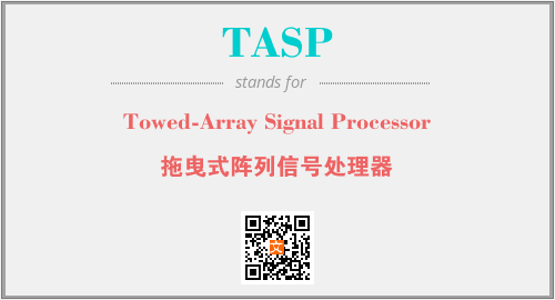 上述内容是“Towed-Array Signal Processor”作为“TASP”的缩写,解释为“拖曳式阵列信号处理器”时的信息,以及英文缩略词TASP所代表的英文单词,其对应的中文拼音、详细解释以及在英文中的流行度和相关分类、应用领域及应用示例等。