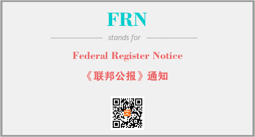 上述内容是“Federal Register Notice”作为“FRN”的缩写,解释为“《联邦公报》通知”时的信息,以及英文缩略词FRN所代表的英文单词,其对应的中文拼音、详细解释以及在英文中的流行度和相关分类、应用领域及应用示例等。