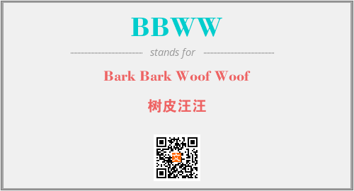 上述内容是“Bark Bark Woof Woof”作为“BBWW”的缩写,解释为“树皮汪汪”时的信息,以及英文缩略词BBWW所代表的英文单词,其对应的中文拼音、详细解释以及在英文中的流行度和相关分类、应用领域及应用示例等。