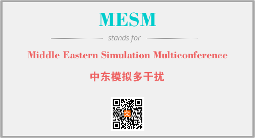 上述内容是“Middle Eastern Simulation Multiconference”作为“MESM”的缩写,解释为“中东模拟多干扰”时的信息,以及英文缩略词MESM所代表的英文单词,其对应的中文拼音、详细解释以及在英文中的流行度和相关分类、应用领域及应用示例等。