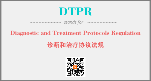上述内容是“Diagnostic and Treatment Protocols Regulation”作为“DTPR”的缩写,解释为“诊断和治疗协议法规”时的信息,以及英文缩略词DTPR所代表的英文单词,其对应的中文拼音、详细解释以及在英文中的流行度和相关分类、应用领域及应用示例等。