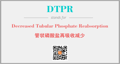 上述内容是“Decreased Tubular Phosphate Reabsorption”作为“DTPR”的缩写,解释为“管状磷酸盐再吸收减少”时的信息,以及英文缩略词DTPR所代表的英文单词,其对应的中文拼音、详细解释以及在英文中的流行度和相关分类、应用领域及应用示例等。