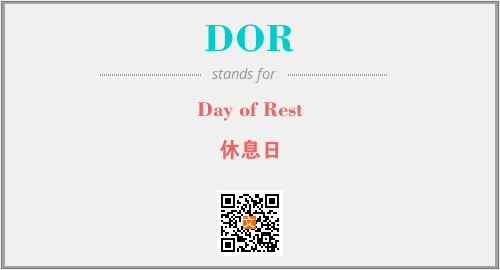 上述内容是“Day of Rest”作为“DOR”的缩写,解释为“休息日”时的信息,以及英文缩略词DOR所代表的英文单词,其对应的中文拼音、详细解释以及在英文中的流行度和相关分类、应用领域及应用示例等。