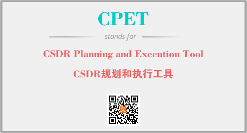 上述内容是“CSDR Planning and Execution Tool”作为“CPET”的缩写,解释为“CSDR规划和执行工具”时的信息,以及英文缩略词CPET所代表的英文单词,其对应的中文拼音、详细解释以及在英文中的流行度和相关分类、应用领域及应用示例等。