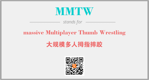 以上为massive Multiplayer Thumb Wrestling英文缩略词MMTW的中文解释,以及该英文缩写在英语的流行度、分类和应用领域方面的信息。