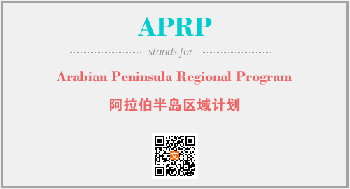 英文缩略词“APRP”经常作为“Arabian Peninsula Regional Program”的英文缩写来使用,中文表示:“阿拉伯半岛区域计划”。本文将详细介绍英文缩写词APRP所代表英文单词,其对应的中文拼音、详细解释以及在英语中的流行度。此外,还有关于缩略词APRP的分类、应用领域及相关应用示例等。