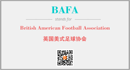 上述内容是“British American Football Association”作为“BAFA”的缩写,解释为“英国美式足球协会”时的信息,以及英文缩略词BAFA所代表的英文单词,其对应的中文拼音、详细解释以及在英文中的流行度和相关分类、应用领域及应用示例等。