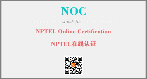 上述内容是“NPTEL Online Certification”作为“NOC”的缩写,解释为“NPTEL在线认证”时的信息,以及英文缩略词NOC所代表的英文单词,其对应的中文拼音、详细解释以及在英文中的流行度和相关分类、应用领域及应用示例等。