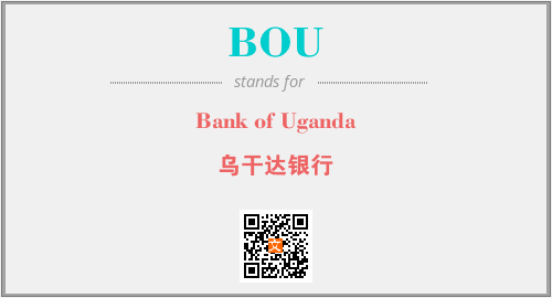上述内容是“Bank of Uganda”作为“BOU”的缩写,解释为“乌干达银行”时的信息,以及英文缩略词BOU所代表的英文单词,其对应的中文拼音、详细解释以及在英文中的流行度和相关分类、应用领域及应用示例等。
