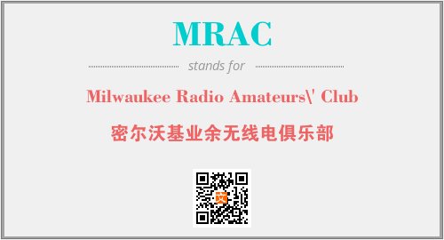 上述内容是“Milwaukee Radio Amateurs\' Club”作为“MRAC”的缩写,解释为“密尔沃基业余无线电俱乐部”时的信息,以及英文缩略词MRAC所代表的英文单词,其对应的中文拼音、详细解释以及在英文中的流行度和相关分类、应用领域及应用示例等。