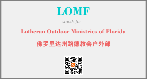 上述内容是“Lutheran Outdoor Ministries of Florida”作为“LOMF”的缩写,解释为“佛罗里达州路德教会户外部”时的信息,以及英文缩略词LOMF所代表的英文单词,其对应的中文拼音、详细解释以及在英文中的流行度和相关分类、应用领域及应用示例等。