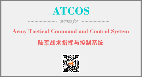 英文缩略词“ATCOS”经常作为“Army Tactical Command and Control System”的英文缩写来使用,中文表示:“陆军战术指挥与控制系统”。本文将详细介绍英文缩写词ATCOS所代表英文单词,其对应的中文拼音、详细解释以及在英语中的流行度。此外,还有关于缩略词ATCOS的分类、应用领域及相关应用示例等。