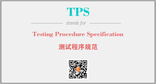 英文缩略词“TPS”经常作为“Testing Procedure Specification”的英文缩写来使用,中文表示:“测试程序规范”。本文将详细介绍英文缩写词TPS所代表英文单词,其对应的中文拼音、详细解释以及在英语中的流行度。此外,还有关于缩略词TPS的分类、应用领域及相关应用示例等。