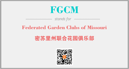 英文缩略词“FGCM”经常作为“Federated Garden Clubs of Missouri”的英文缩写来使用,中文表示:“密苏里州联合花园俱乐部”。本文将详细介绍英文缩写词FGCM所代表英文单词,其对应的中文拼音、详细解释以及在英语中的流行度。此外,还有关于缩略词FGCM的分类、应用领域及相关应用示例等。