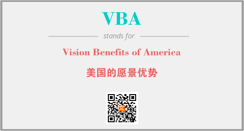 以上为Vision Benefits of America英文缩略词VBA的中文解释,以及该英文缩写在英语的流行度、分类和应用领域方面的信息。