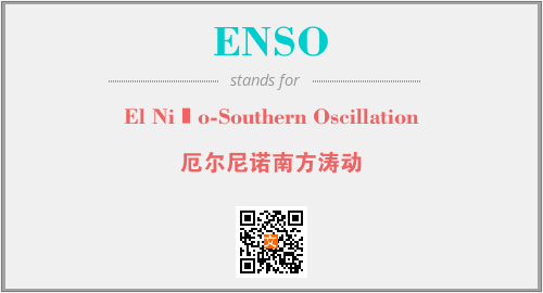 英文缩略词“ENSO”经常作为“El Niño-Southern Oscillation”的英文缩写来使用,中文表示:“厄尔尼诺南方涛动”。本文将详细介绍英文缩写词ENSO所代表英文单词,其对应的中文拼音、详细解释以及在英语中的流行度。此外,还有关于缩略词ENSO的分类、应用领域及相关应用示例等。
