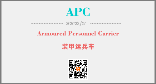 以上为Armoured Personnel Carrier英文缩略词APC的中文解释,以及该英文缩写在英语的流行度、分类和应用领域方面的信息。