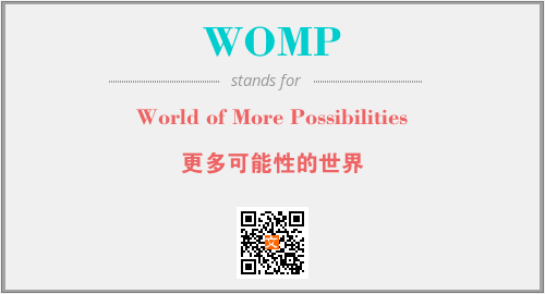以上为World of More Possibilities英文缩略词WOMP的中文解释,以及该英文缩写在英语的流行度、分类和应用领域方面的信息。