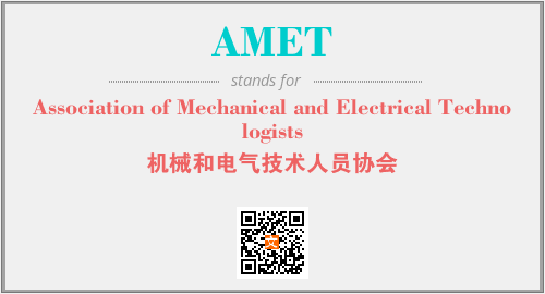 上述内容是“Association of Mechanical and Electrical Technologists”作为“AMET”的缩写,解释为“机械和电气技术人员协会”时的信息,以及英文缩略词AMET所代表的英文单词,其对应的中文拼音、详细解释以及在英文中的流行度和相关分类、应用领域及应用示例等。
