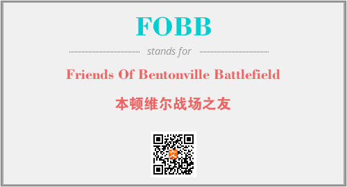 上述内容是“Friends Of Bentonville Battlefield”作为“FOBB”的缩写,解释为“本顿维尔战场之友”时的信息,以及英文缩略词FOBB所代表的英文单词,其对应的中文拼音、详细解释以及在英文中的流行度和相关分类、应用领域及应用示例等。