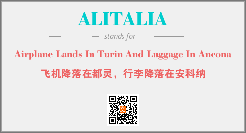 上述内容是“Airplane Lands In Turin And Luggage In Ancona”作为“ALITALIA”的缩写,解释为“飞机降落在都灵,行李降落在安科纳”时的信息,以及英文缩略词ALITALIA所代表的英文单词,其对应的中文拼音、详细解释以及在英文中的流行度和相关分类、应用领域及应用示例等。