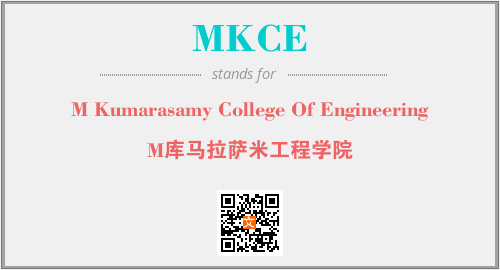 上述内容是“M Kumarasamy College Of Engineering”作为“MKCE”的缩写,解释为“M库马拉萨米工程学院”时的信息,以及英文缩略词MKCE所代表的英文单词,其对应的中文拼音、详细解释以及在英文中的流行度和相关分类、应用领域及应用示例等。