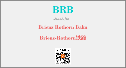 英文缩略词“BRB”经常作为“Brienz Rothorn Bahn”的英文缩写来使用,中文表示:“Brienz-Rothorn铁路”。本文将详细介绍英文缩写词BRB所代表英文单词,其对应的中文拼音、详细解释以及在英语中的流行度。此外,还有关于缩略词BRB的分类、应用领域及相关应用示例等。