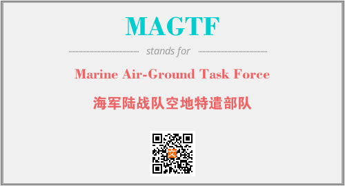 英文缩略词“MAGTF”经常作为“Marine Air-Ground Task Force”的英文缩写来使用,中文表示:“海军陆战队空地特遣部队”。本文将详细介绍英文缩写词MAGTF所代表英文单词,其对应的中文拼音、详细解释以及在英语中的流行度。此外,还有关于缩略词MAGTF的分类、应用领域及相关应用示例等。
