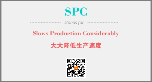上述内容是“Slows Production Considerably”作为“SPC”的缩写,解释为“大大降低生产速度”时的信息,以及英文缩略词SPC所代表的英文单词,其对应的中文拼音、详细解释以及在英文中的流行度和相关分类、应用领域及应用示例等。