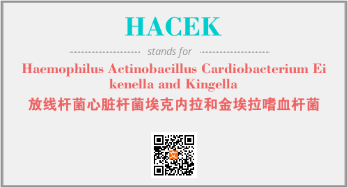 以上为Haemophilus Actinobacillus Cardiobacterium Eikenella and Kingella英文缩略词HACEK的中文解释,以及该英文缩写在英语的流行度、分类和应用领域方面的信息。