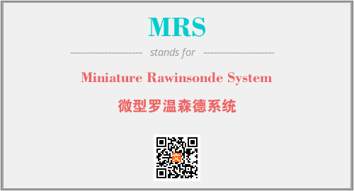 英文缩略词“MRS”经常作为“Miniature Rawinsonde System”的英文缩写来使用,中文表示:“微型罗温森德系统”。本文将详细介绍英文缩写词MRS所代表英文单词,其对应的中文拼音、详细解释以及在英语中的流行度。此外,还有关于缩略词MRS的分类、应用领域及相关应用示例等。