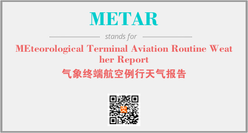 英文缩略词“METAR”经常作为“MEteorological Terminal Aviation Routine Weather Report”的英文缩写来使用,中文表示:“气象终端航空例行天气报告”。本文将详细介绍英文缩写词METAR所代表英文单词,其对应的中文拼音、详细解释以及在英语中的流行度。此外,还有关于缩略词METAR的分类、应用领域及相关应用示例等。
