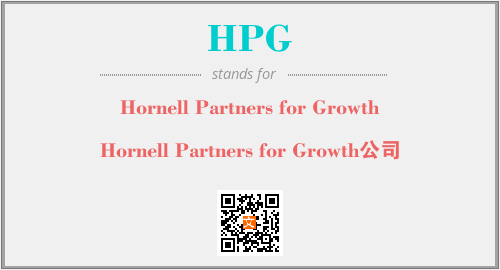 上述内容是“Hornell Partners for Growth”作为“HPG”的缩写,解释为“Hornell Partners for Growth公司”时的信息,以及英文缩略词HPG所代表的英文单词,其对应的中文拼音、详细解释以及在英文中的流行度和相关分类、应用领域及应用示例等。