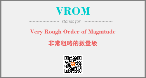 以上为Very Rough Order of Magnitude英文缩略词VROM的中文解释,以及该英文缩写在英语的流行度、分类和应用领域方面的信息。