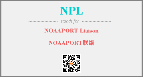 英文缩略词“NPL”经常作为“NOAAPORT Liaison”的英文缩写来使用,中文表示:“NOAAPORT联络”。本文将详细介绍英文缩写词NPL所代表英文单词,其对应的中文拼音、详细解释以及在英语中的流行度。此外,还有关于缩略词NPL的分类、应用领域及相关应用示例等。